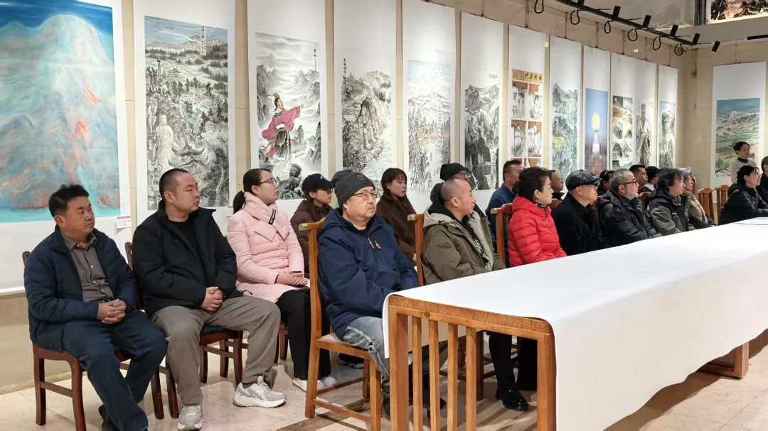 本次展览也是武威市文联围绕讲好“武威故事”组织开展系列文艺采风与主题创作活动的重要成果展示,旨在通过美术这一直观生动的艺术形式,系统呈现武威厚重的历史底蕴、壮丽的自然山河与璀璨的地域文化。现场气氛热烈,各位艺术爱好者齐聚一堂,在一幅幅佳作前驻足欣赏,围绕画中的凉州风物与历史意象展开交流探讨。现场既涌动着对艺术的真诚热爱,也流淌着对这片土地深厚的归属感与自豪情怀。